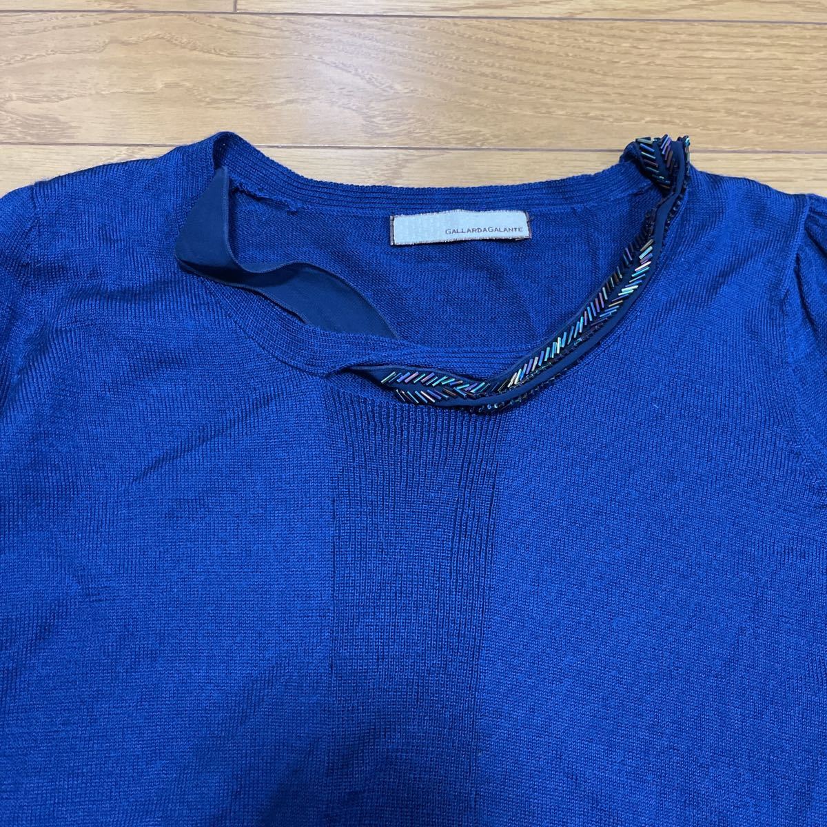 送料無料■GALLARDAGALANTE ガリャルダガランテ ブルー ビジュー 長袖ニット サイズF