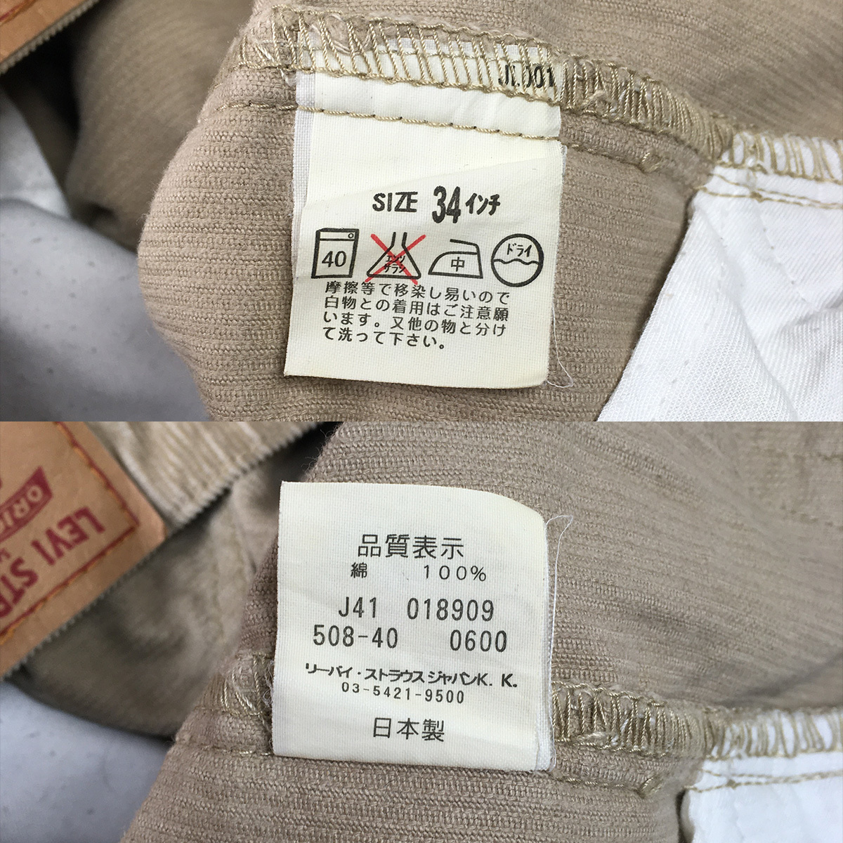 Levi's リーバイス 508 508-40 日本製 00年 コーデュロイ W34 L34 ベージュ パンツ ジップフライ