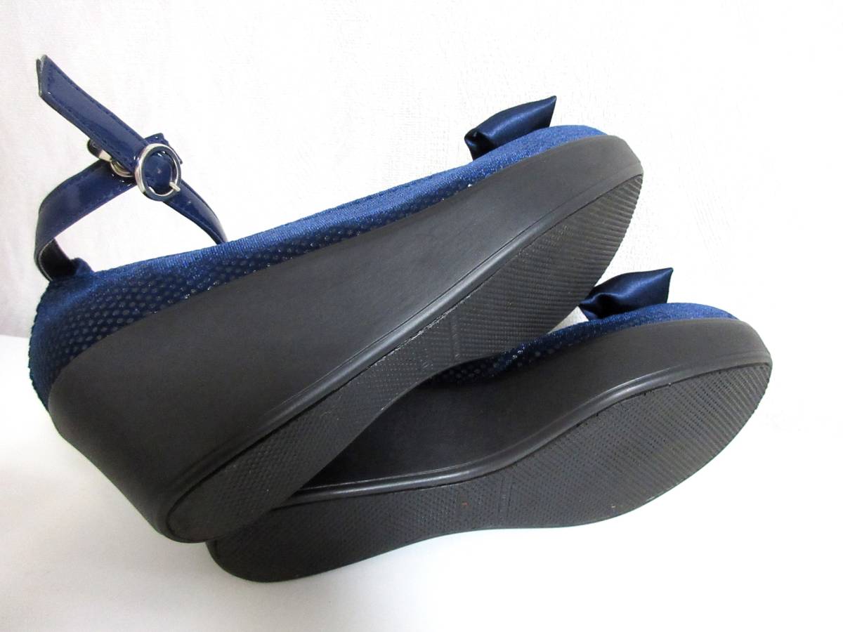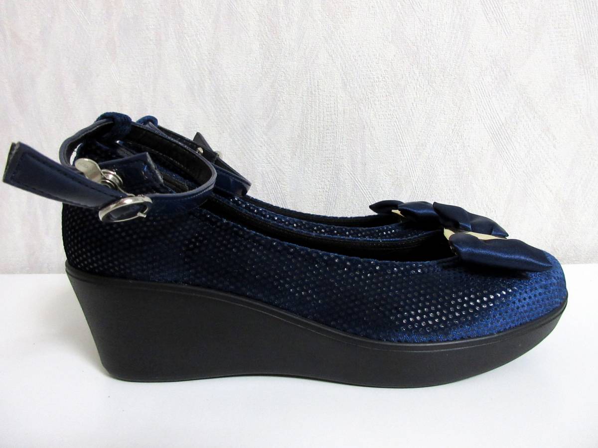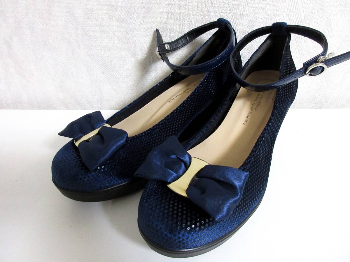 AREZZO リボン パンプス 紺 ネイビー 23.0 ウェッジソール 北1312