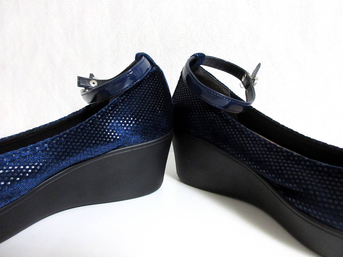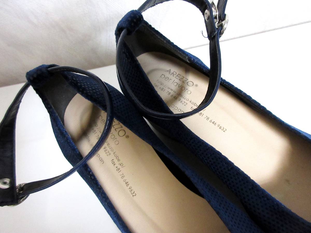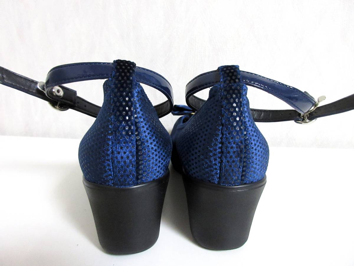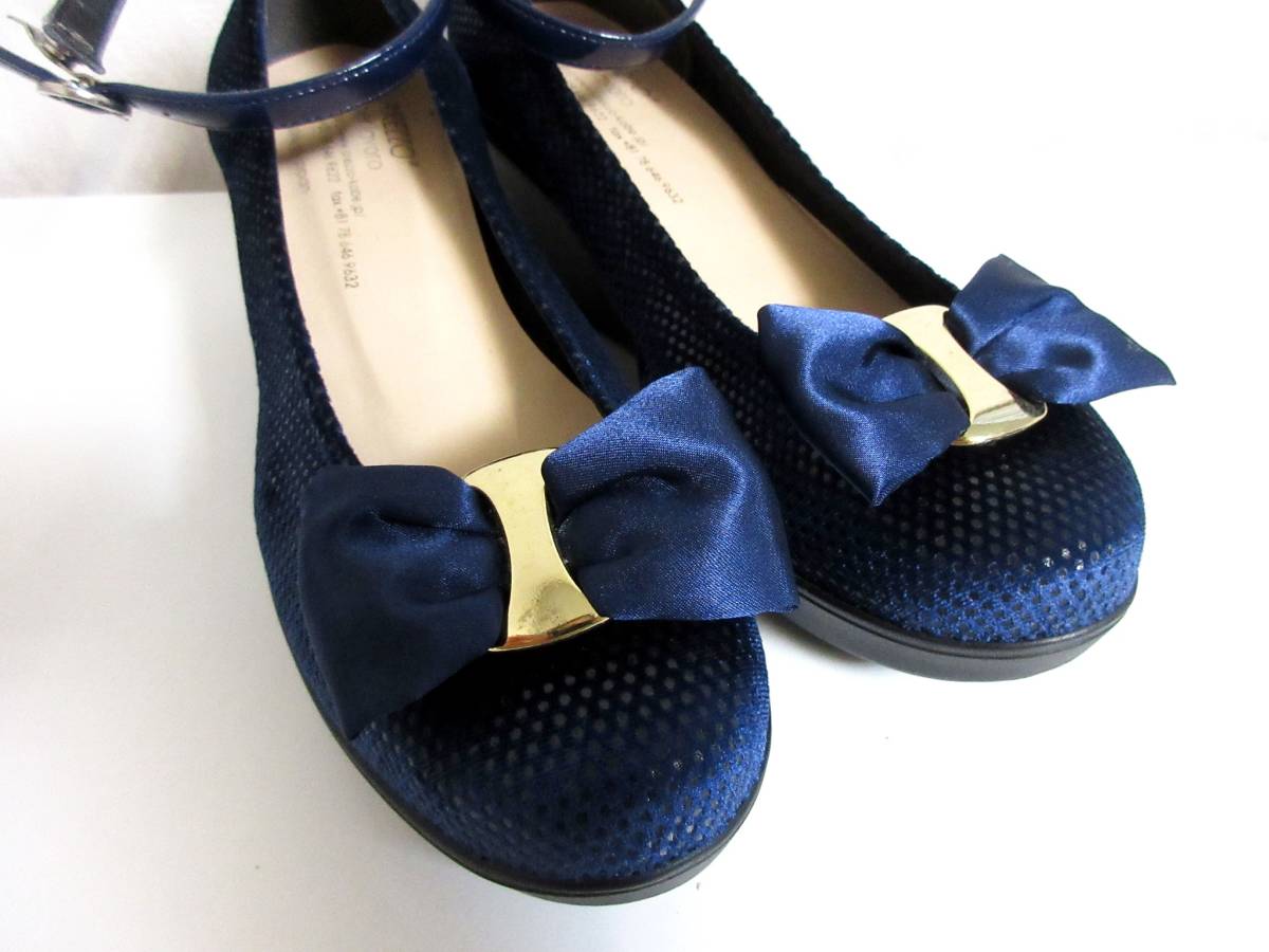 AREZZO リボン パンプス 紺 ネイビー 23.0 ウェッジソール 北1312