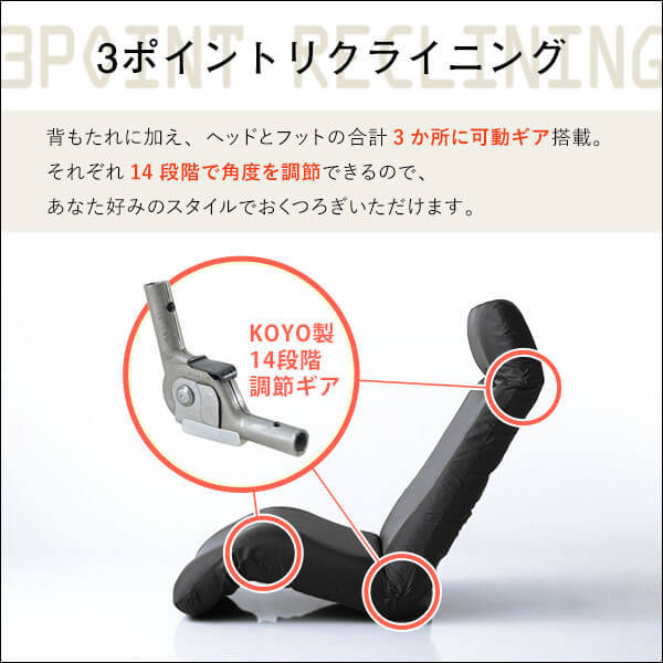 ヘッド・背・フットの3箇所14段階リクライニング。