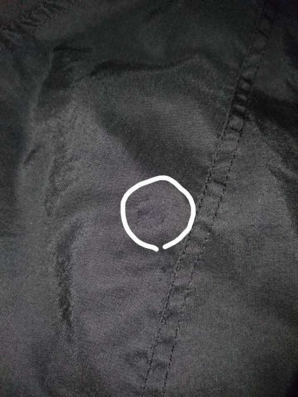 近くで見ないとわかりませんが、右肩に1ヶ所ピンホールがありましたので、ナイロンリペアシートで補修しています