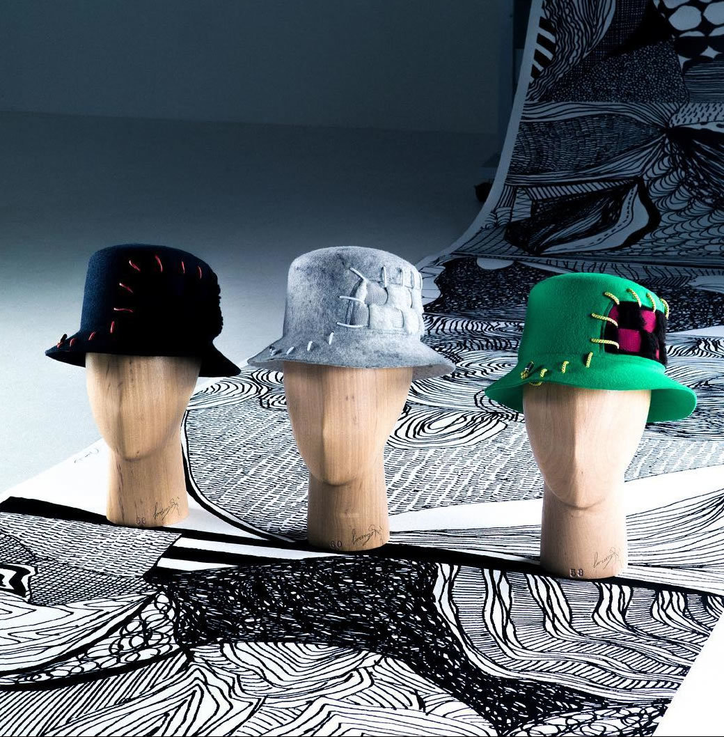 これまでの形式や概念にとらわれない、 豊かな価値を創造していくこれからの帽子をコンセプトに、オートクチュールの 要素を織り交ぜた帽子を提案。