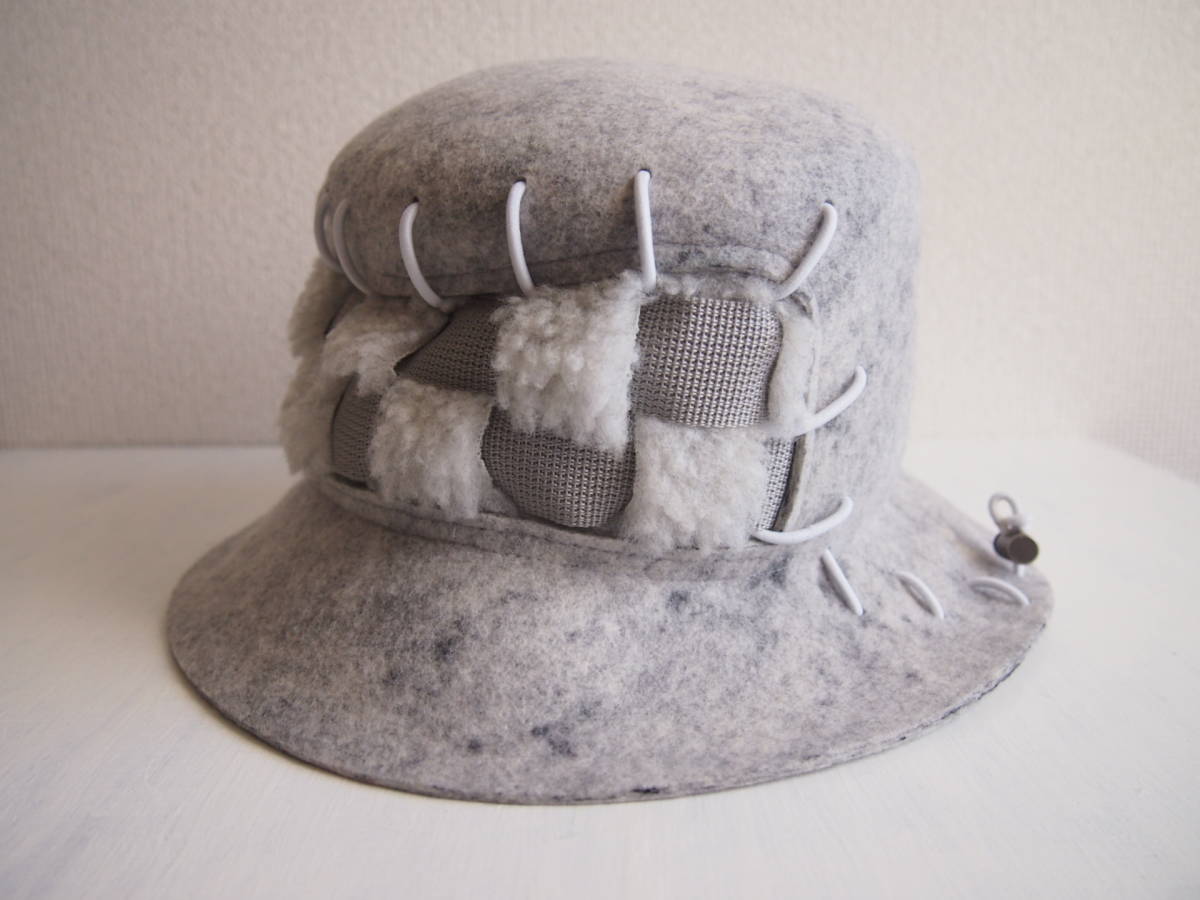 K51新品32,000円 56cm 極暖 ボア もこもこ帽 グレー日本製 カミラフカ KAMILAVKA バケツハット バケットハット 帽子 フェルトハット バケハ