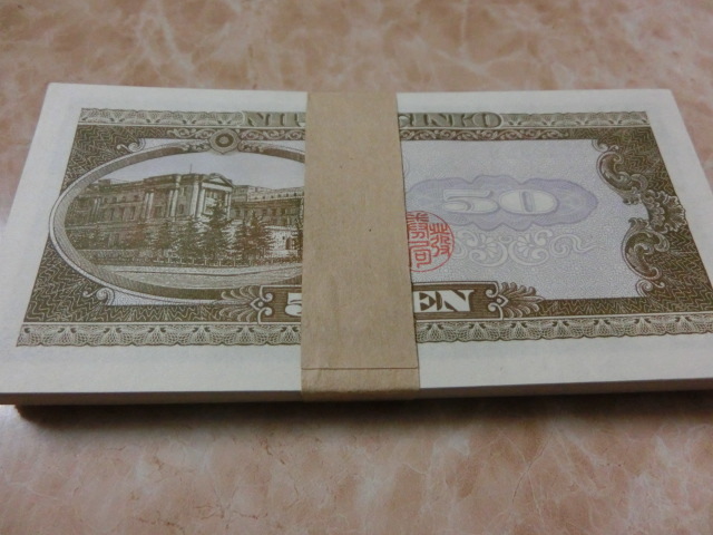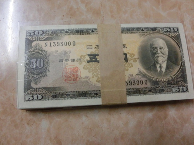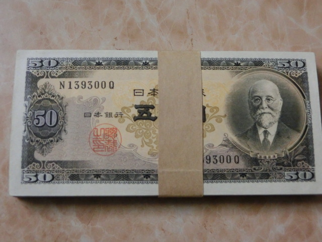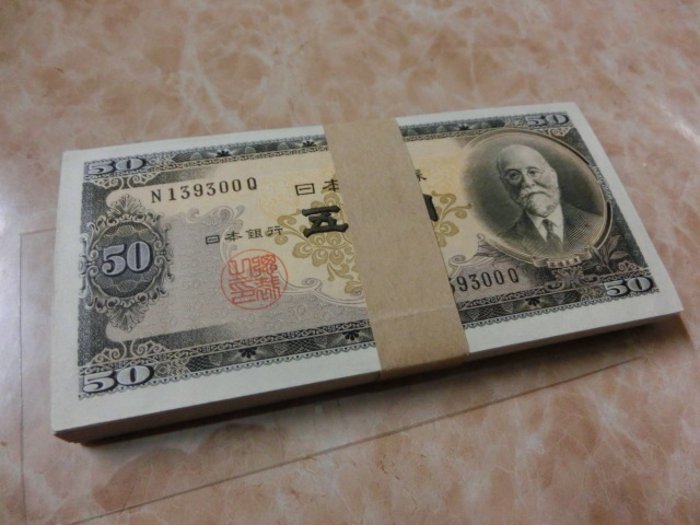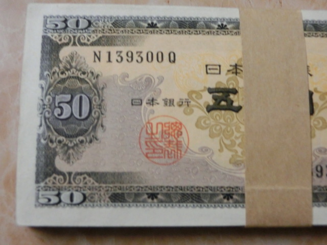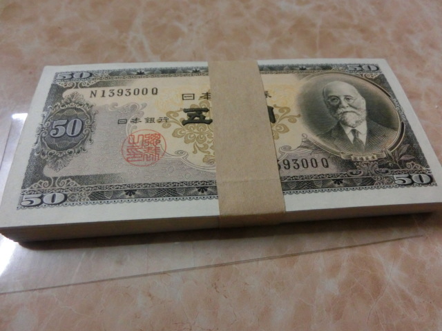 日本銀行券B号50円 高橋50円の未使用~準未使用・連番を100枚です。