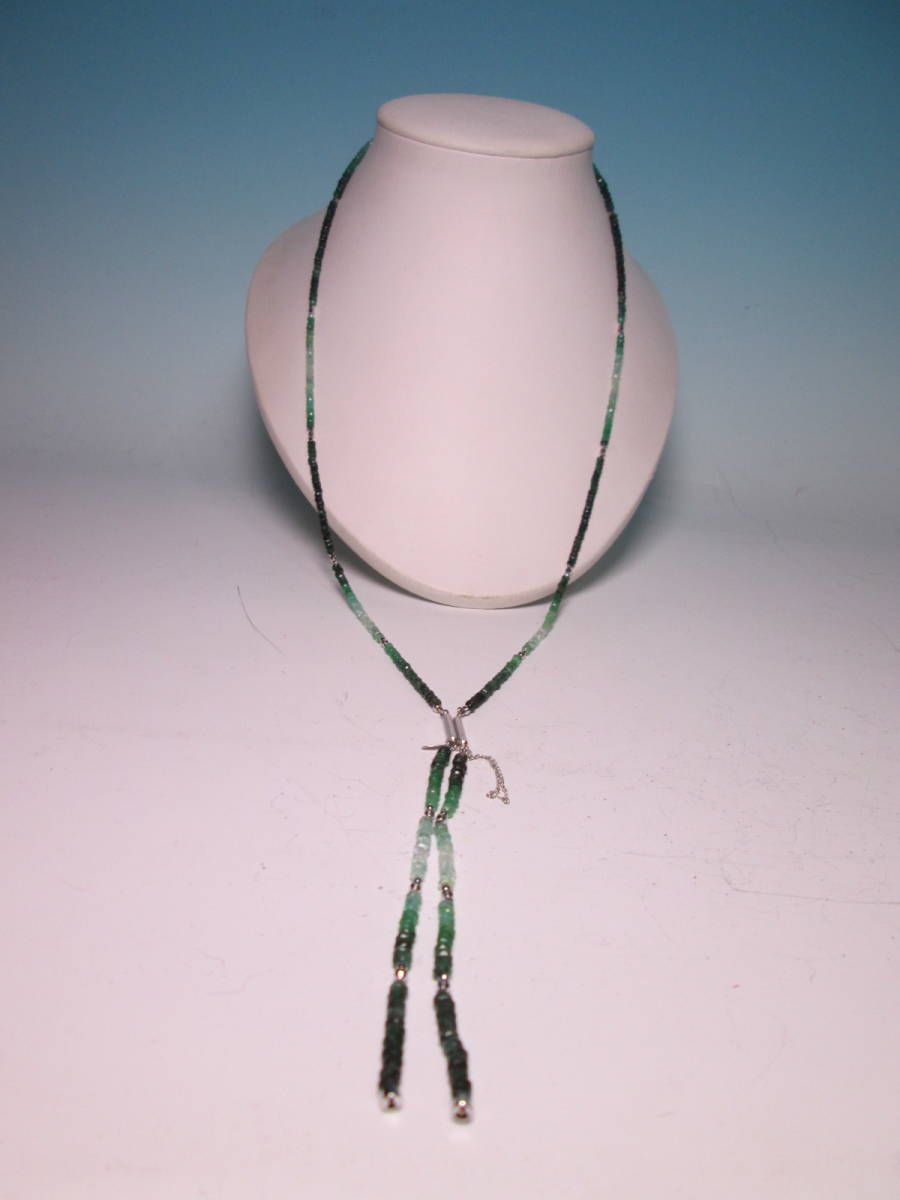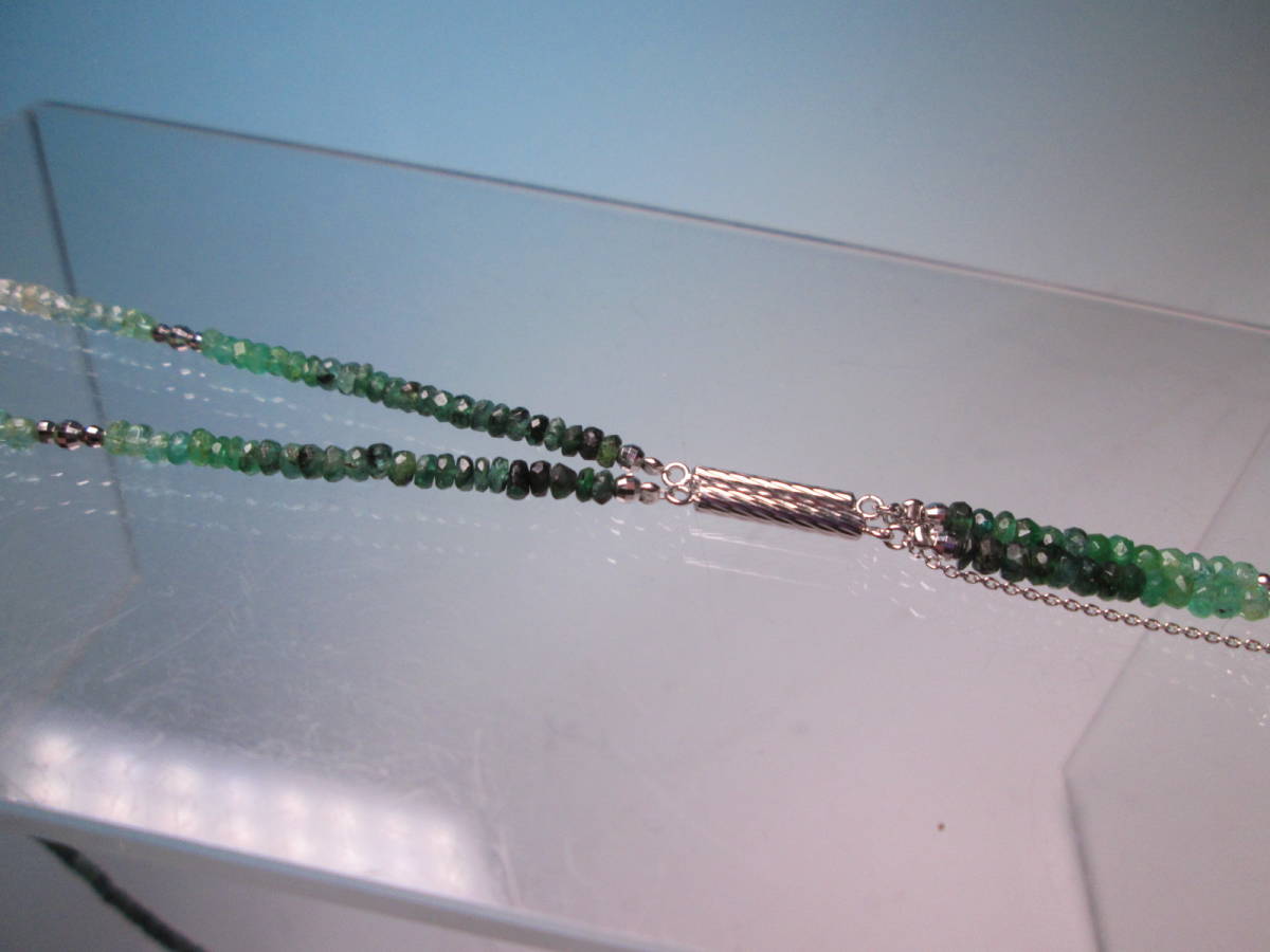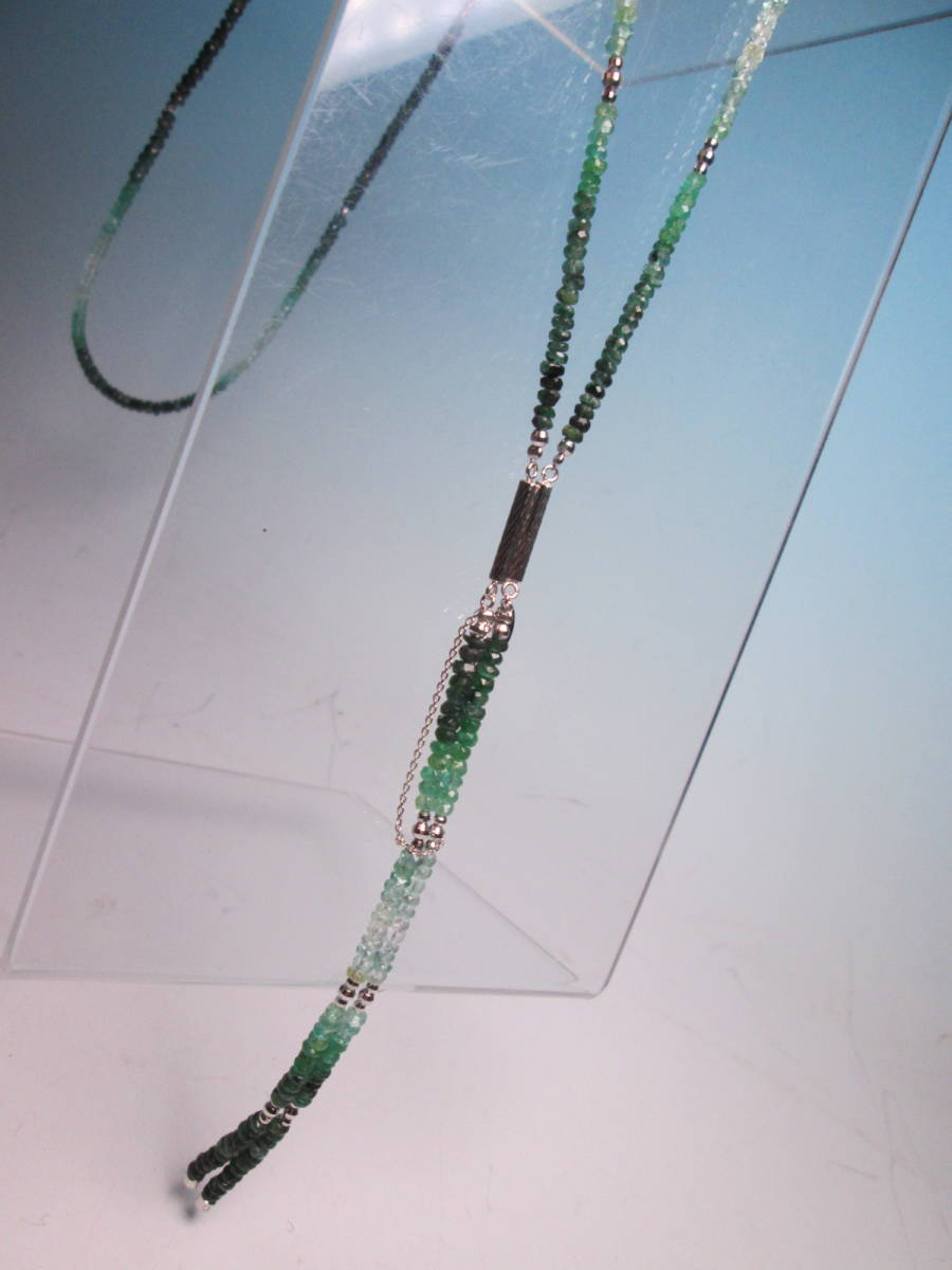 【江月】K18WG エメラルド ベリル デザインロングネックレス 14g