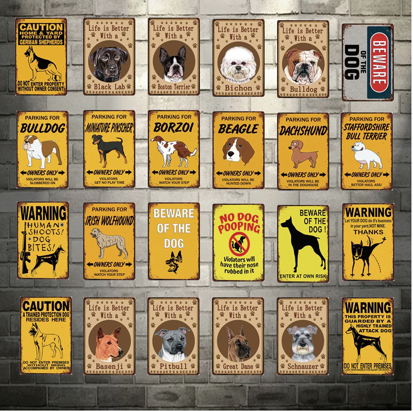 A1331 メタル サイン ブリキ 看板 金属 製 プレート パネル 店舗 カフェ コーヒー 注意 動物 ペット 犬 トイ プードル 2613