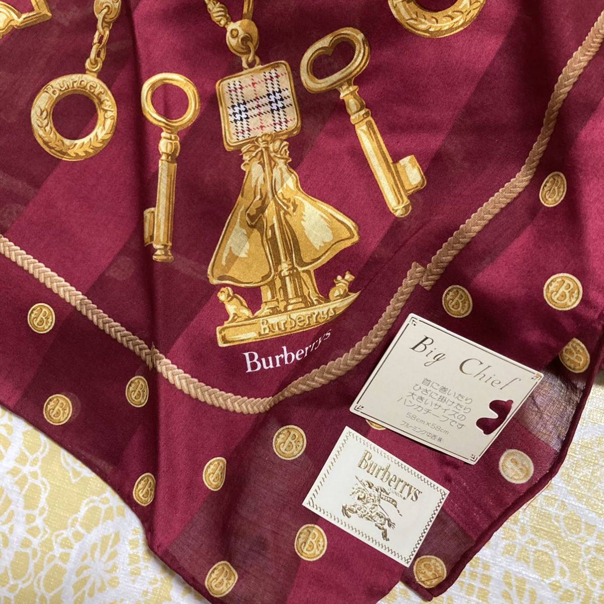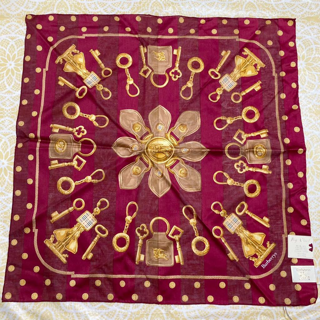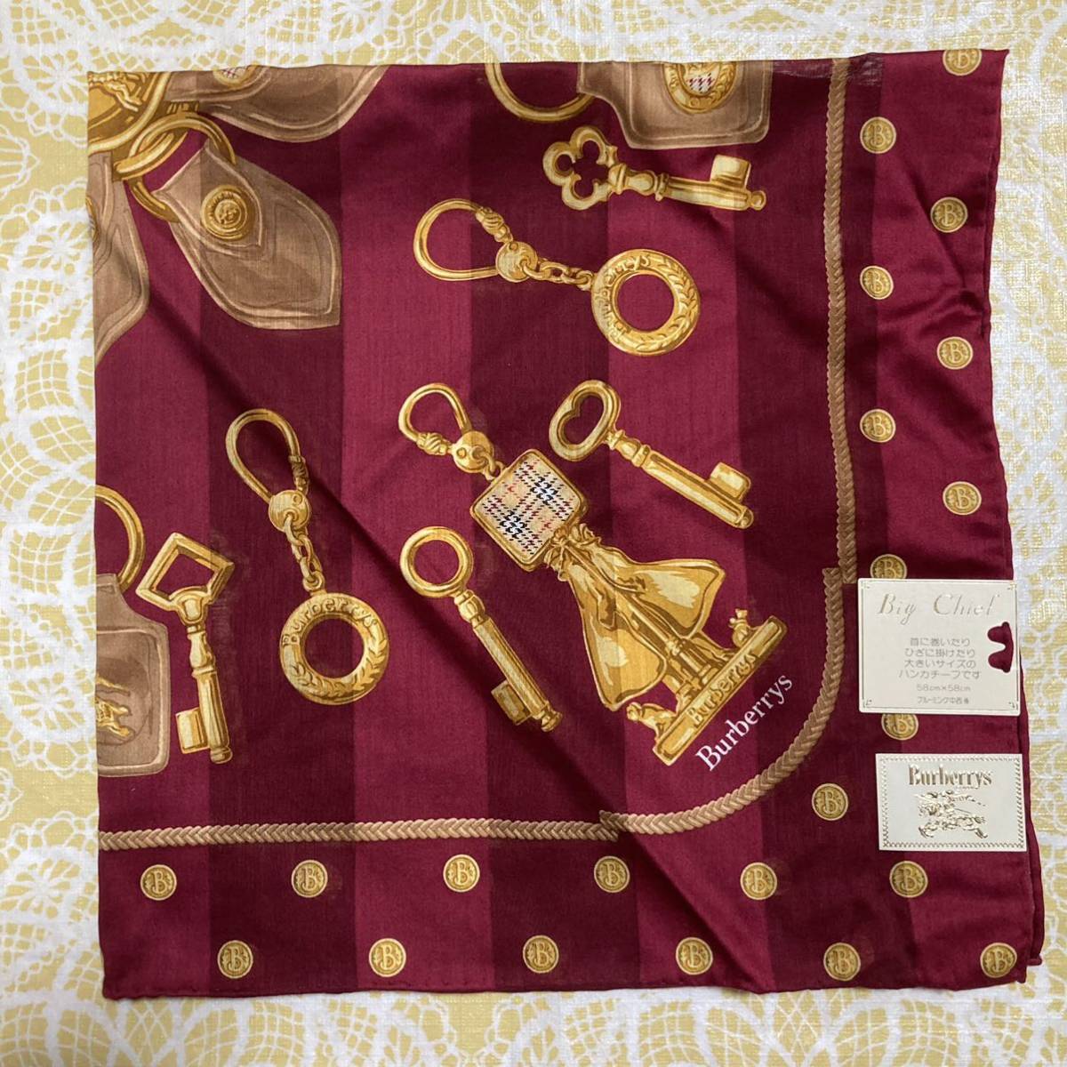 【人気柄】新品/BURBERRY/大判ハンカチ/正規品/バーバリー/綿100%/未使用/即決あり/匿名発送/女性用/スカーフ/ストール/鍵/チャーム柄/58cm