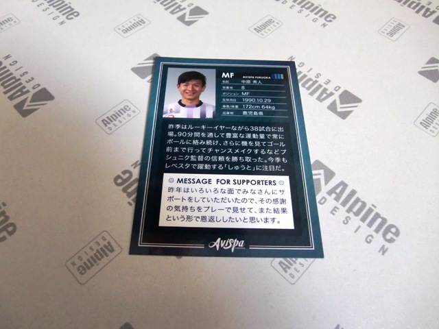 〇2014アビスパ福岡マッチデー配布カード 中原秀人 ギラヴァンツ北九州 鹿児島ユナイテッド