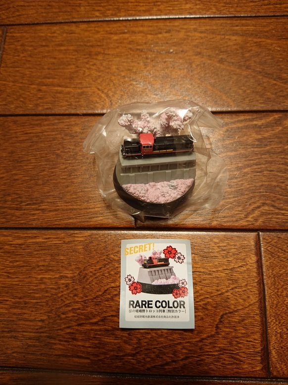 ケンエレファント新作の「京都 嵐山 MINIATURE LANDSCAPEより激レアの 『桜の嵯峨野トロッコ列車【特別カラー】』」です。ノーマルの紅葉の並木が桜になっていて、桜の時期に走るトロッコ列車の姿が見事に表現されています。内袋未開封、専用解説書付きです(リストは最初から付属していません)。破損防止のためカプセル入りで送付いたします。送料ですが普通定形外でよろしければ260円となります。