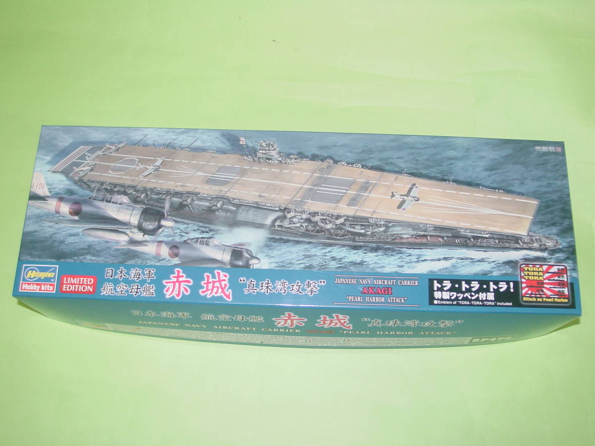 1/700 ハセガワ ウォーターラインシリーズ SP474 リミテッドエディション 大日本帝国海軍 航空母艦 「日本航空母艦 赤城 “真珠湾攻撃”」、限定版。写真のトラ・トラ・トラ!特製ワッペン付属。中袋未開封の新品ですが外箱のわずかな擦れ等がありましてもご容赦下さい。完璧な新品状態を望まれる方、神経質な方は入札をご遠慮下さい。発送方法は郵便局の定形外郵便(輸送中の事故補償及び追跡番号無し)または宅配便(ヤマト宅急便・佐川急便・ゆうパック、いずれも全額保証・追跡有り・対面手渡し)からお選びいただき、お知らせ下さい。定形外の送料は落札後にお知らせいたします。定形外に追跡番号が付けられる特定記録郵便は160円プラスとなります。宅配便の送料は自己紹介をご覧下さい。よろしくお願いいたします。