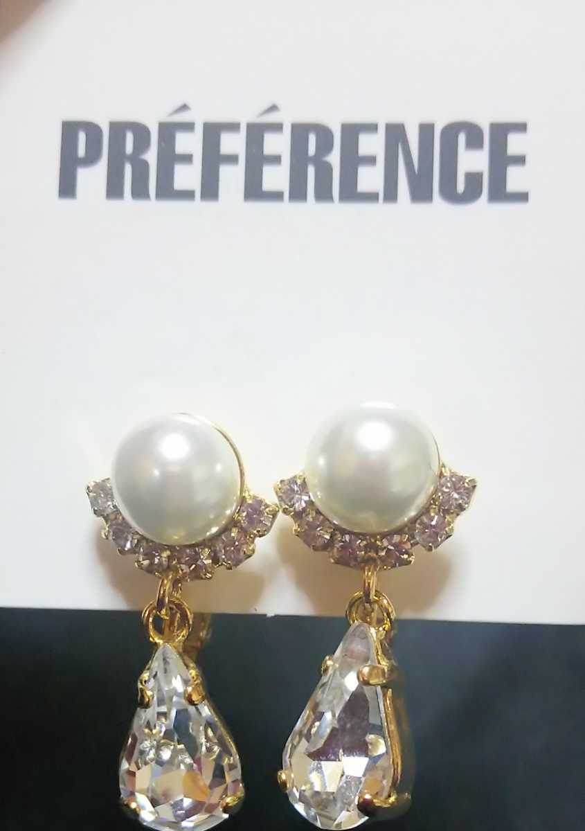 パールとしずく型ストーンの素敵なイヤリングです☆