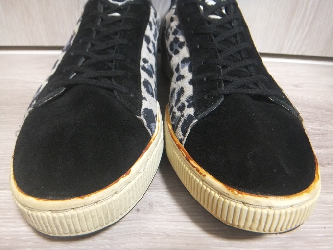 商品説明 | ・商品名 90s 日本製 PUMA SUEDE レオパード ・サイズ 27cm ・カラー 黒/グレー(レオパード) ・状態 中古品になります。アッパーとミッドソールの間、間付近に接着剤(だと思います)の変色があります。ミッドソールに汚れ、黄ばみがあります。アッパーのスエード部分に色ムラ、色落ちがあります。ソールの減りは少ないかと思います。年代の割には全体的に状態は悪くはないかと思います。箱はありません。 |