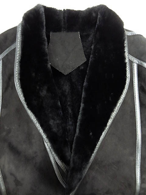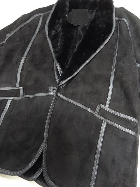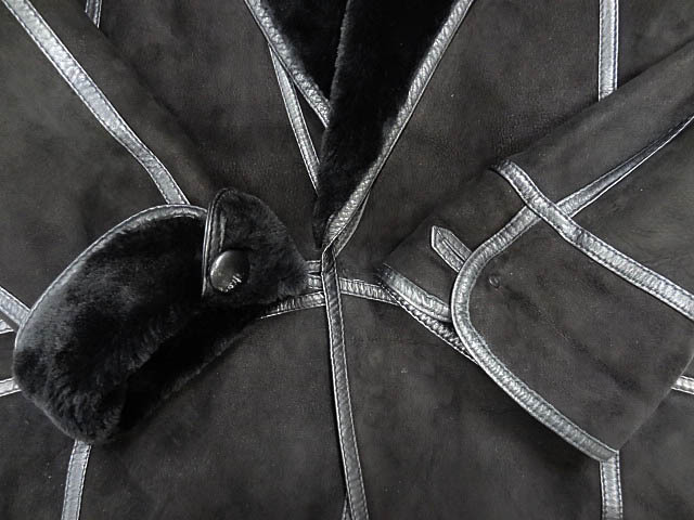 ビンテージ ムートン 変形 ショールカラー デザイン レザー トリム パイピング コート 黒 ブラック ファー シープスキン ジャケット レア