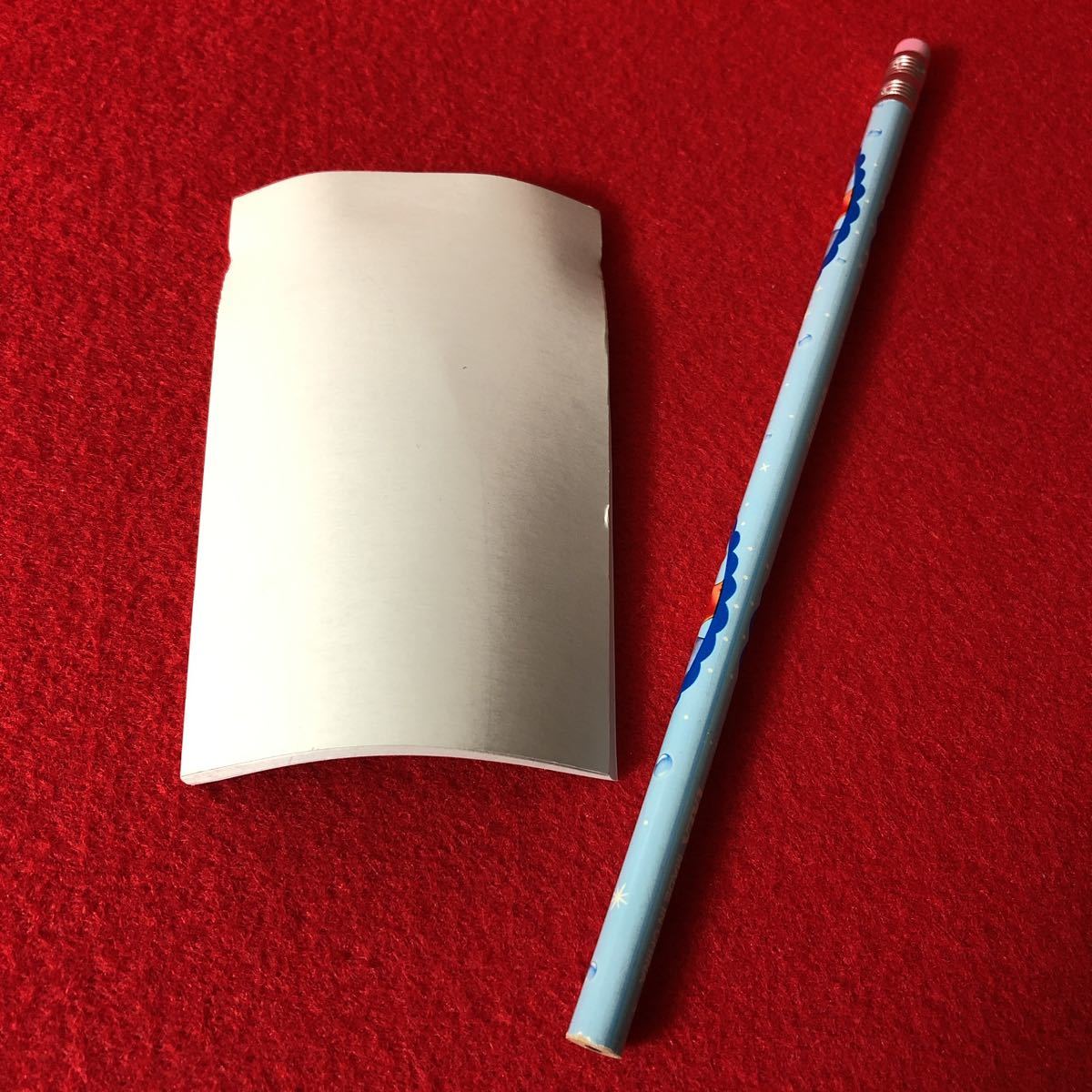 また、ペン立ての円柱の中に入っていた為、湾曲しております。