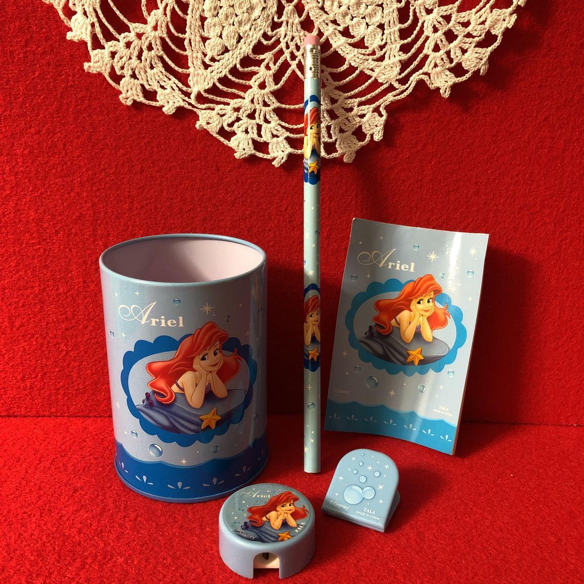 リトルマーメイド◇アリエル◇文具セット◇ペン立て クリップ 鉛筆削り 鉛筆 ノート◇5点セット◇ディズニー◇未使用品