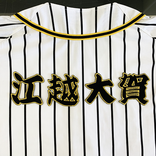 | 商品説明 | 阪神 タイガース 江越大賀選手の名前、アイロン接着用刺繍ワッペンの出品です。 アイロンにて簡単に接着可能♪♪ ※写真のユニフォーム等、他の装飾品はついておりません。 |