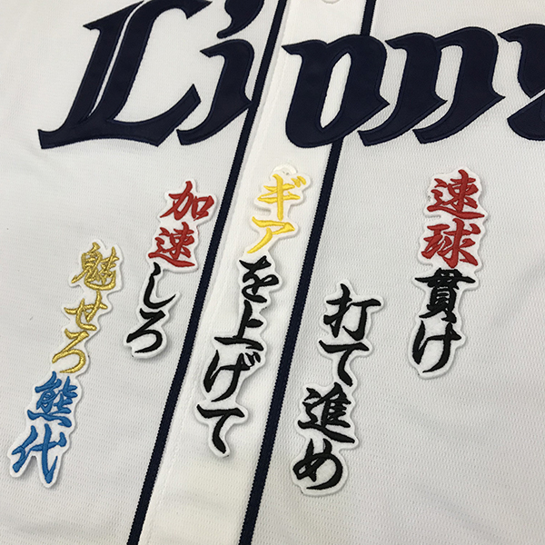 商品説明 | 埼玉 西武 ライオンズ 熊代聖人選手の応援歌、アイロン接着用刺繍ワッペンの出品です。 アイロンにて簡単に接着可能♪♪ ※写真のユニフォーム等、他の装飾品はついておりません。 |