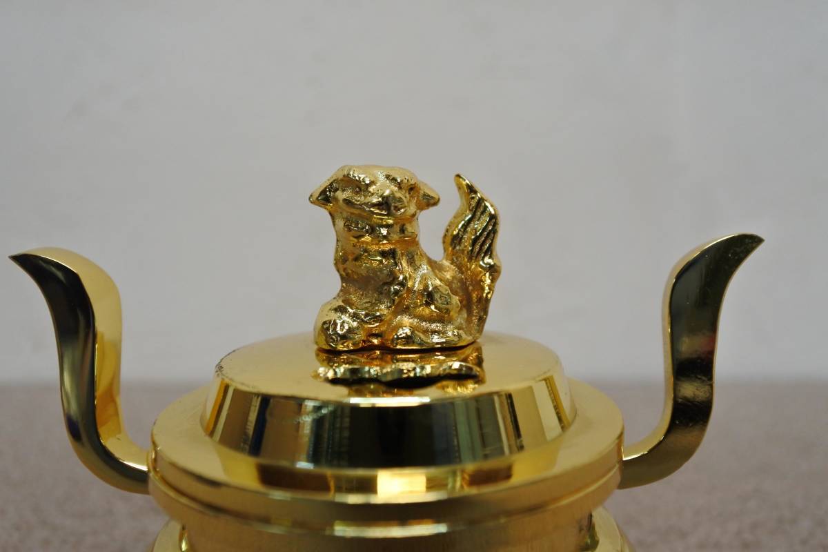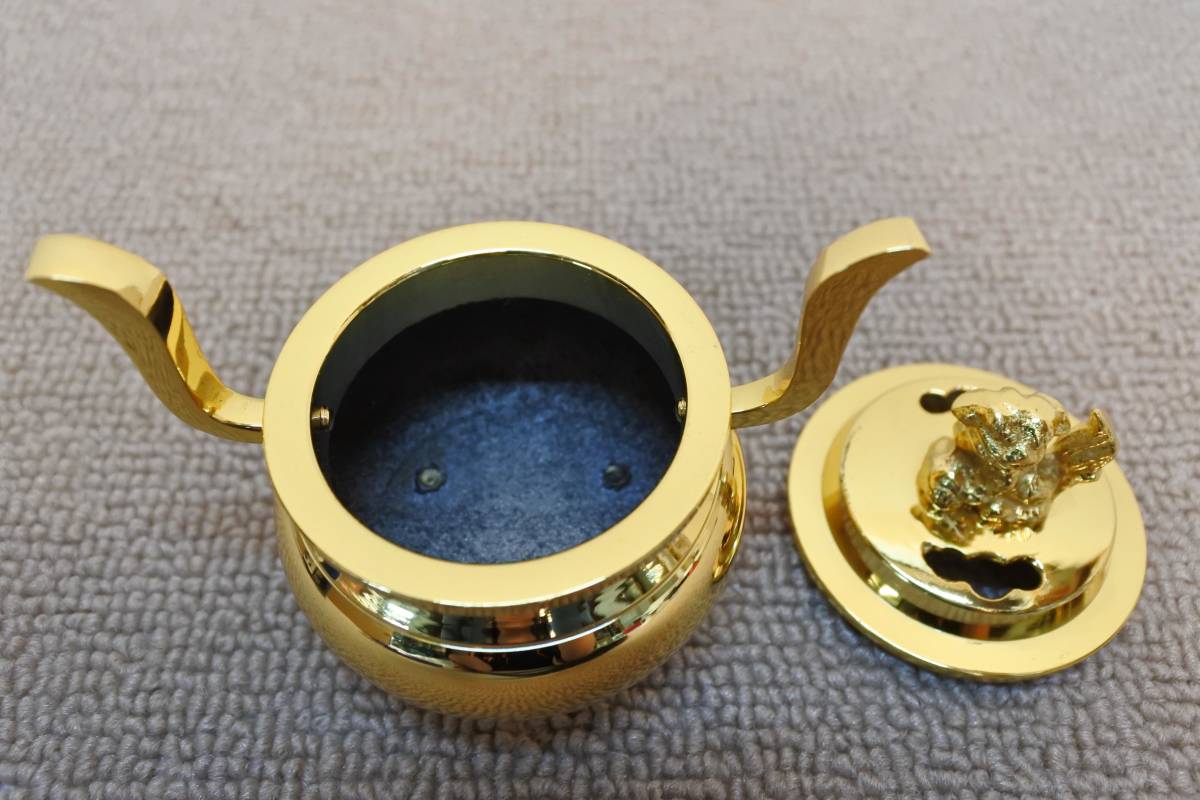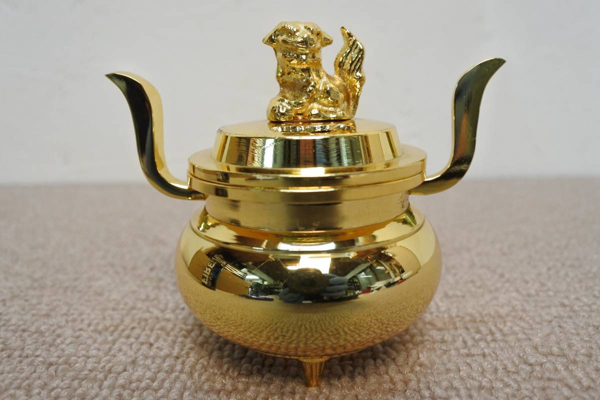 【長期未使用保管品】本金メッキ真鍮製香炉 香炉 真鍮製 仏具 仏壇(201128り)1159 M