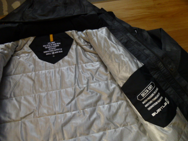 裏地:全天候型保温素材(サーモトロン ラジポカ)・帯電防止(メガーナ)・アルミフィルムラミネート加工(保温性)
