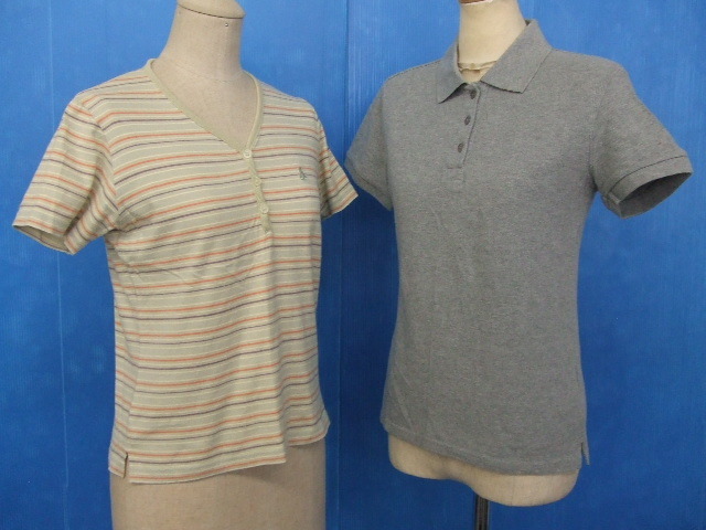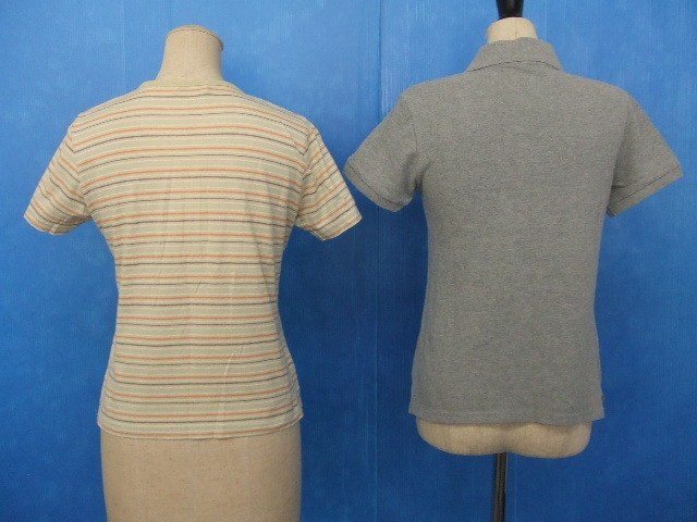 半袖トップスMサイズ2点セット ①WEATHERCOCK/カットソー/ボーダー柄 ②ポロシャツ/グレー