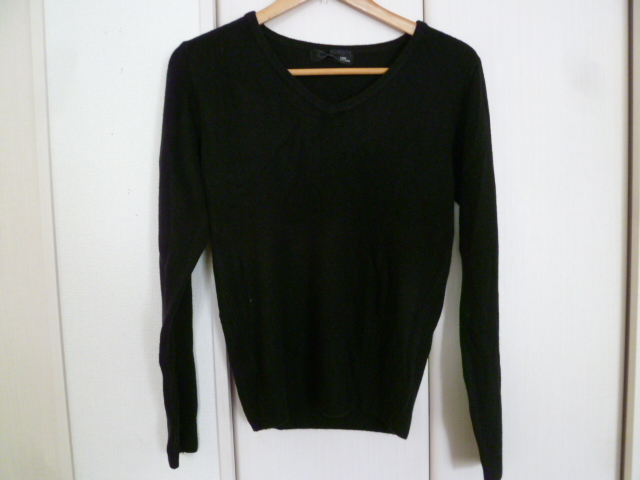 KOBE LETTUCE/神戸レタス○黒Vネックシンプルニット/ブラックマキシム長袖トップスセーター○②ST1028