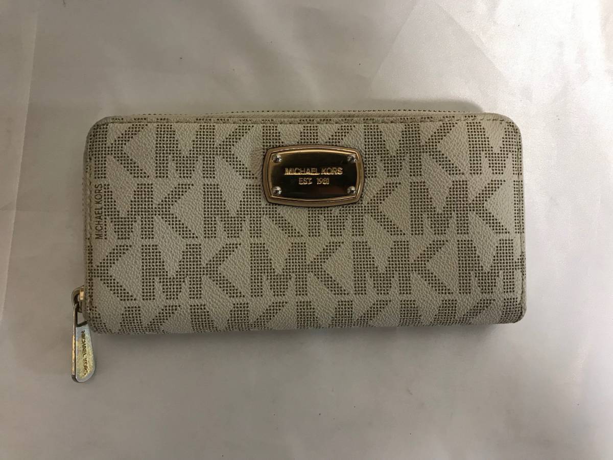 商品名:本物マイケルコースMICHAELKORSMK本革レザーラウンドファスナージップ長財布サイフ札入れレディース白ホワイトMKロゴ柄メンズ旅行トラベル