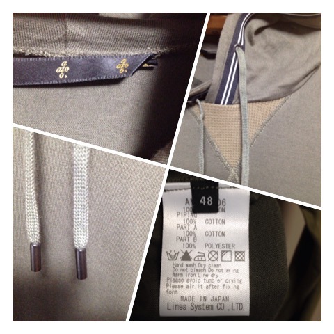 薄手の素材 フード周りにテープ付 フードのひも先は金属