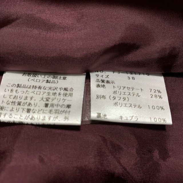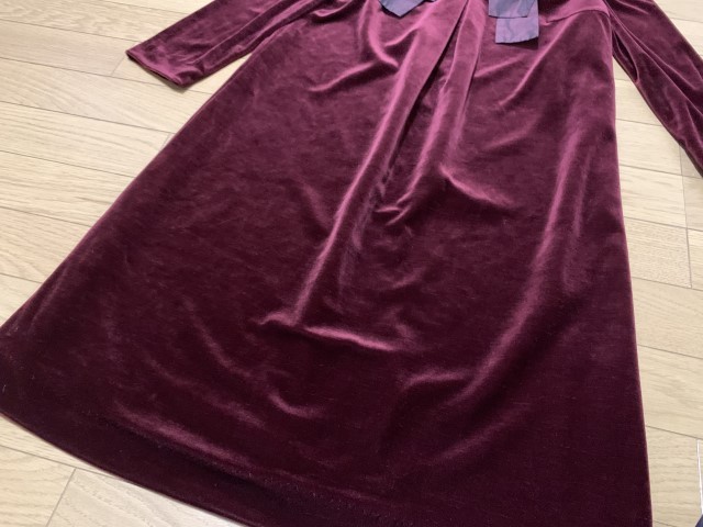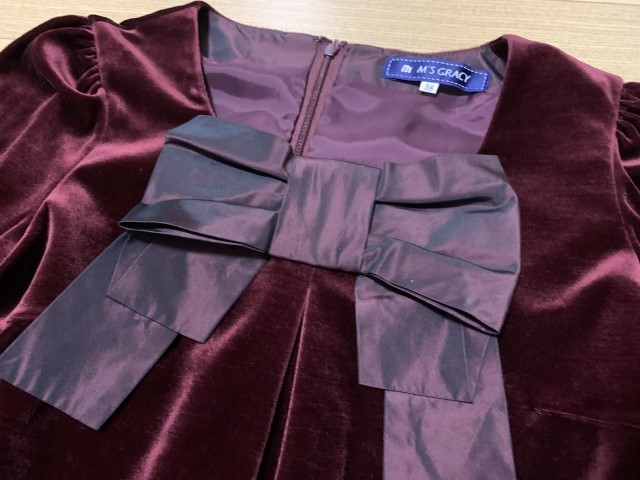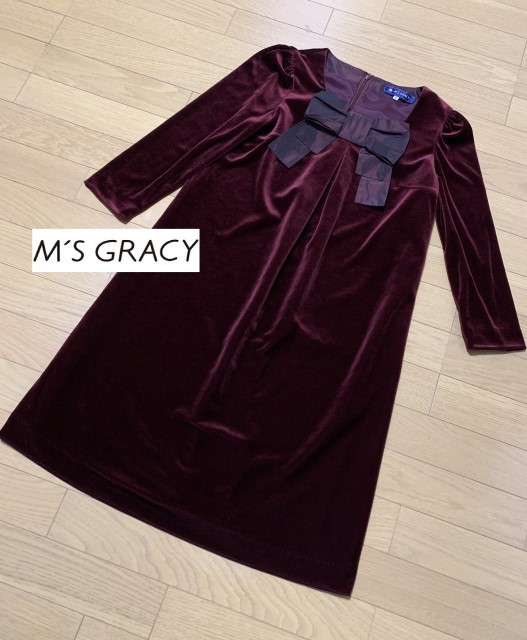 M'S GRACY【エムズグレイシー】ワインレッド 大きなリボン付き 高級ベロア ワンピース サイズ38