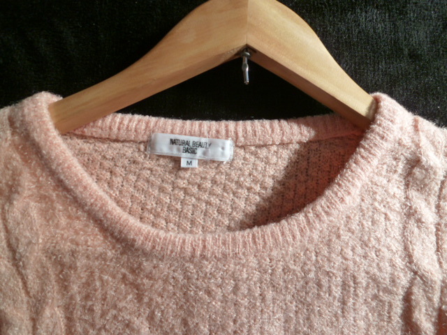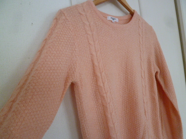 NATURAL BEAUTY BASIC/ナチュラルビューティーベーシック○サーモンピンク系ケーブル編みニットセーターM/長袖トップス○⑥ST1022