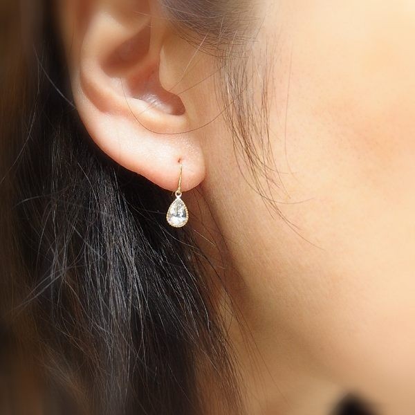 繊細なカットを施したペアシェイプのアクアマリンをゴールドの枠にセットしました