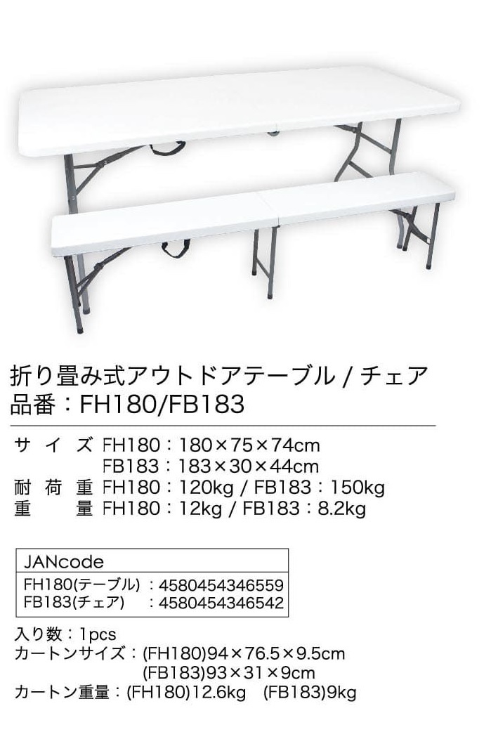【新商品】「折り畳み式アウトドアテーブル」型番:FH180