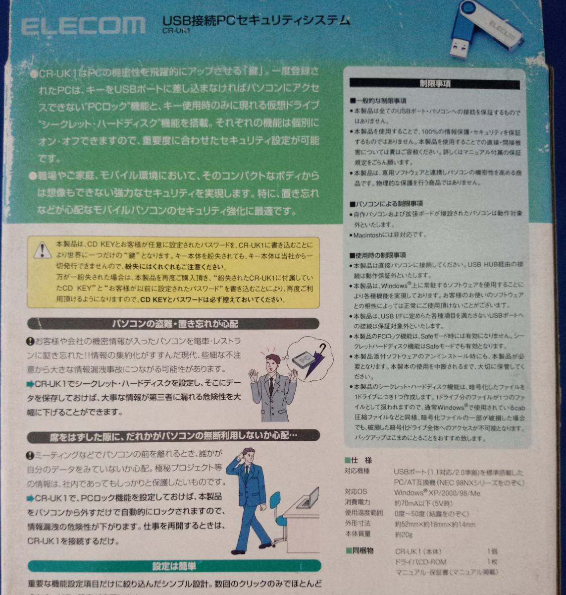 ELECOM CR-UK1 USB接続PCセキュリティシステム 簡単・強力パソコンロック