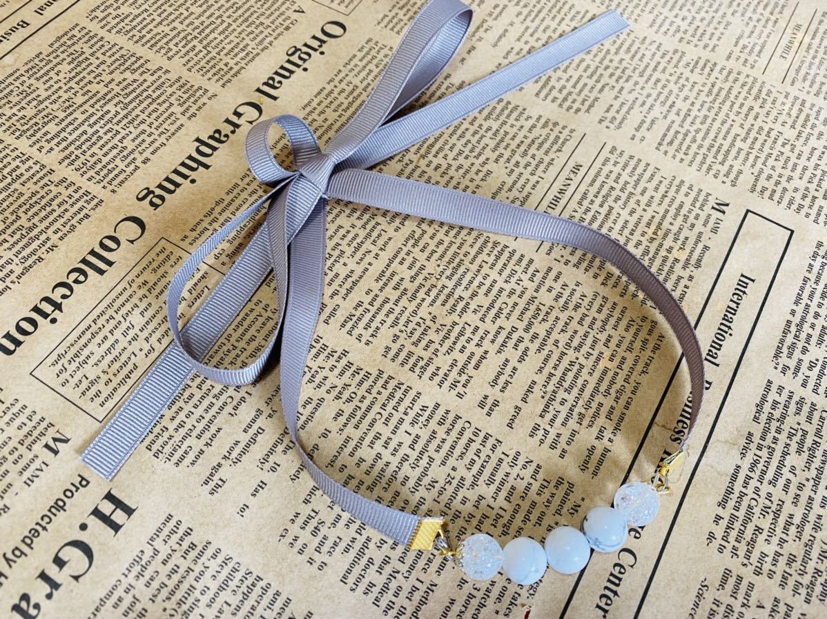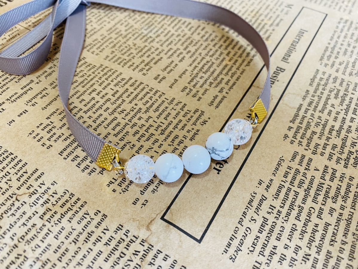 ◇美麗◇天然石 グログランリボンネックレス◇ハウライト×クラック水晶◇レディース◇パワーストーン◇