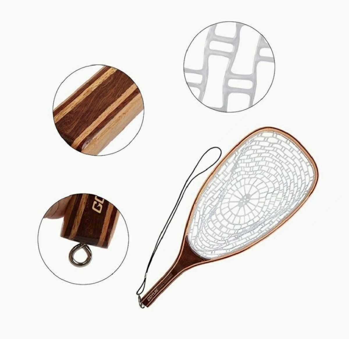 木製 ランディングネット 3点セット ラバーコーティング スタンダードネット 渓流 管釣り フライフィッシング ウェーディングマン用 7980
