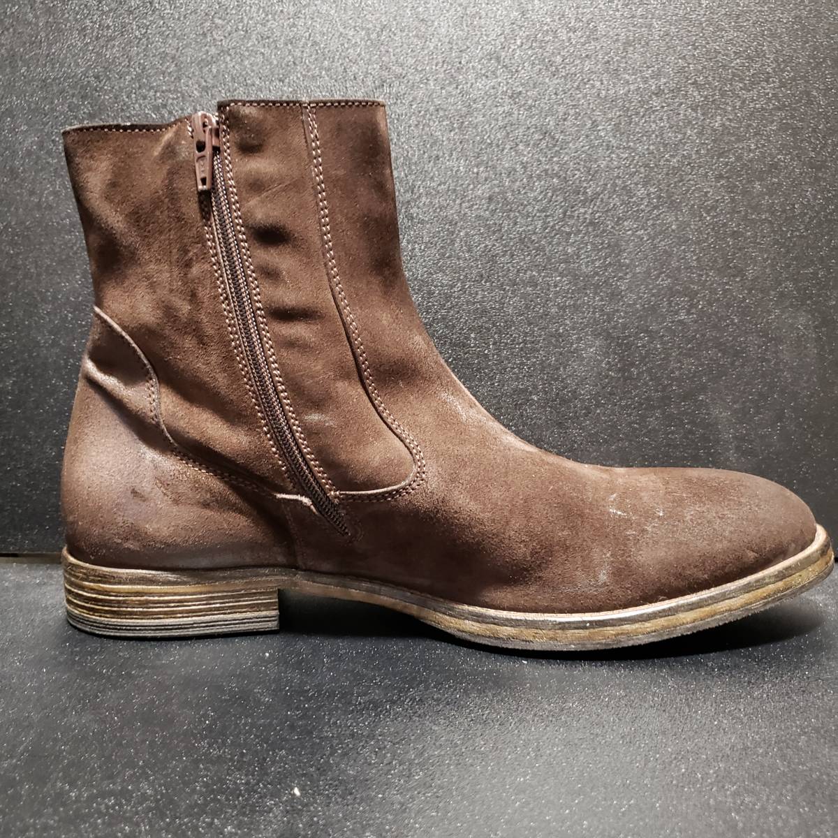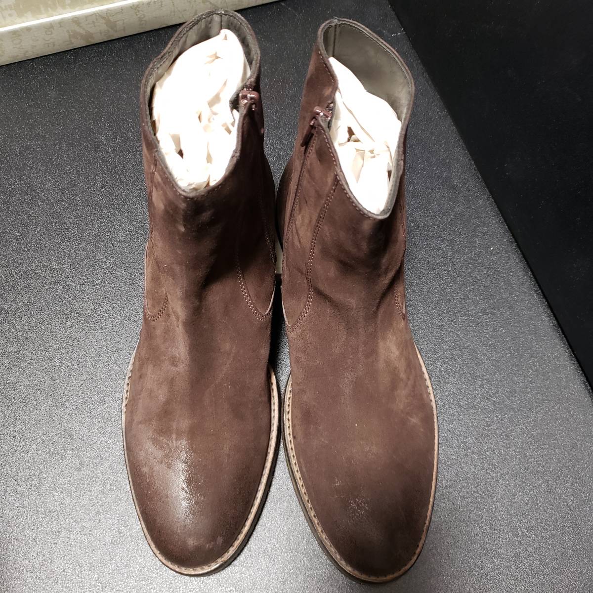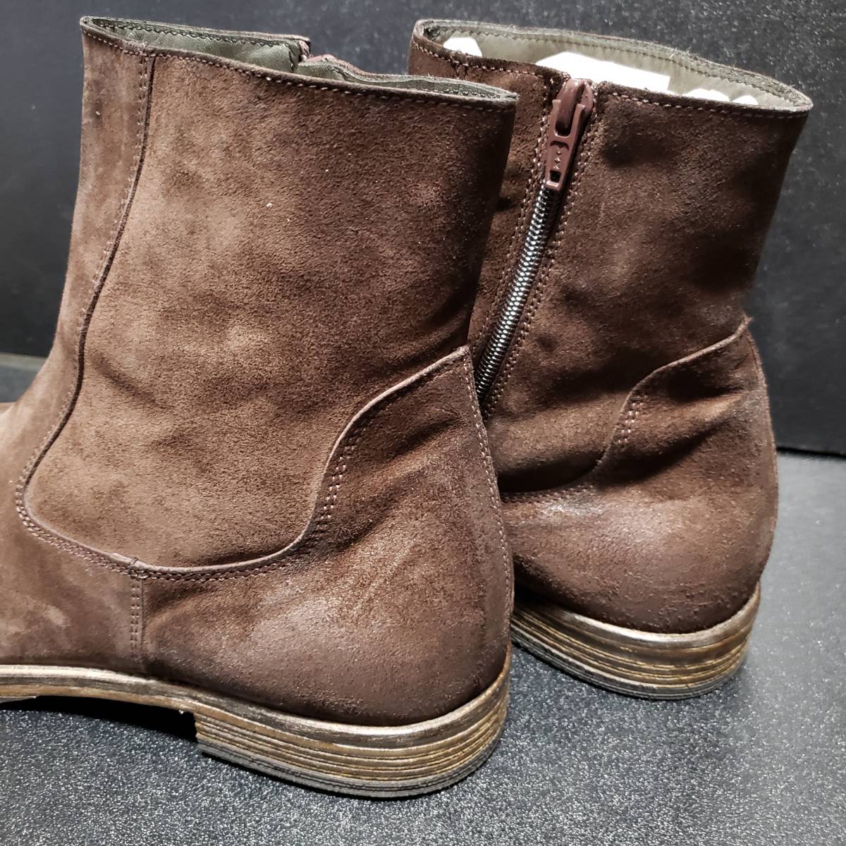 茶のスエードレザーを用いたサイドジップ式のショートブーツです。