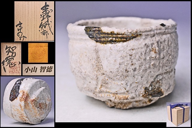小山智徳 ★ 志野織部 ぐい呑 ★ 共箱 共布 栞 ★ 独特な意匠の上手作 ★ 師:瀧口喜兵爾 ★ 酒器 ★