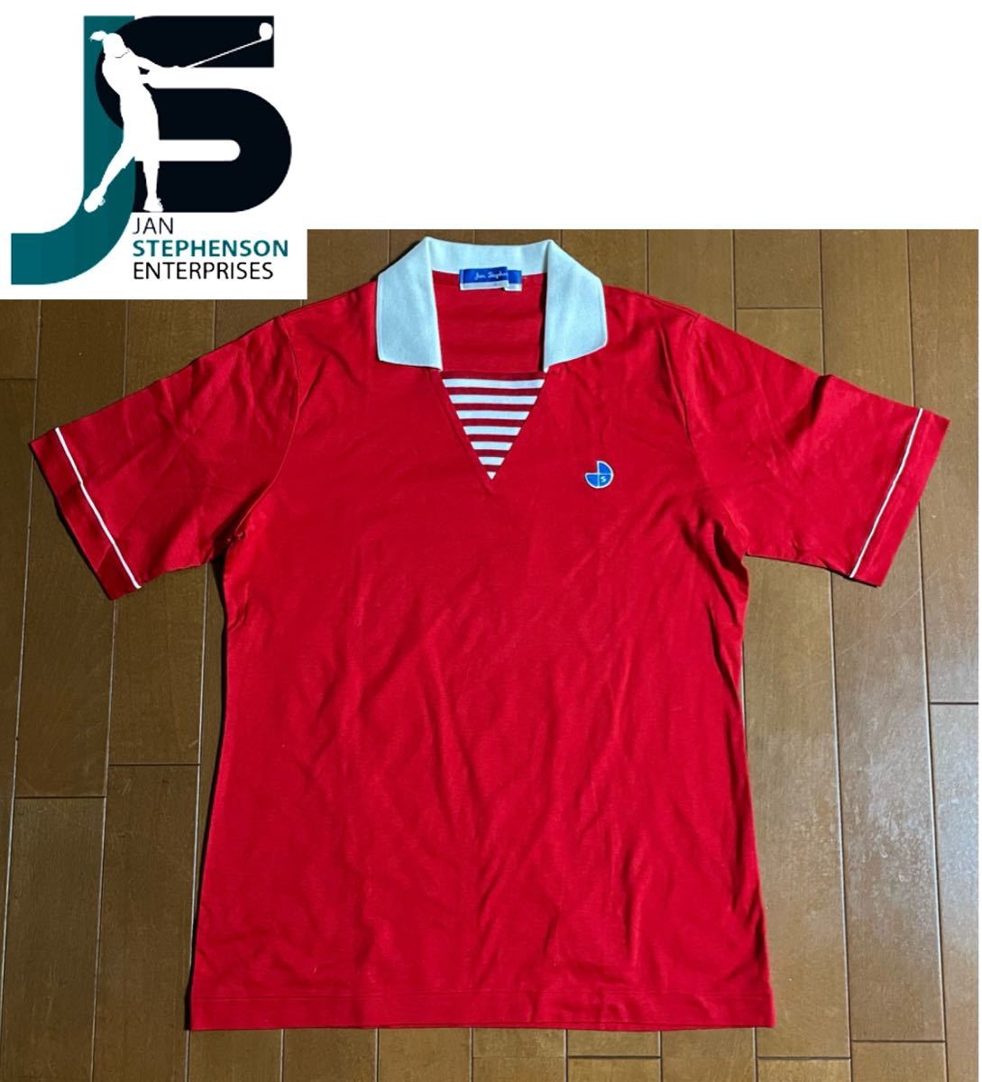 ★Jan Stephenson ジャン・リン・スティーブンソン★コット素材のレッドカラーレディース半袖シャツ/L