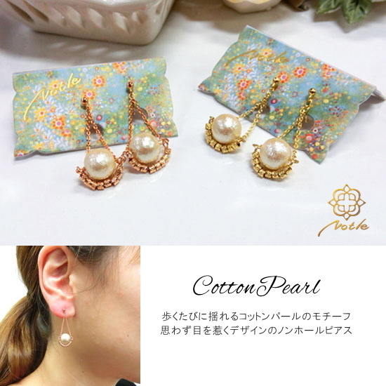 商品番号 ACC-010商品名 ノンホールピアスブランド Notle(ノートル)カラー ライトゴールド素材 コットンパールサイズ トップ:直径0.8cm