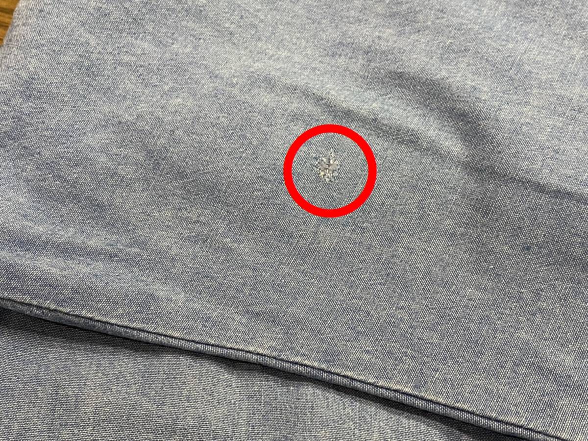 フロントボタンに付けなおし箇所があり、糸色が違います。