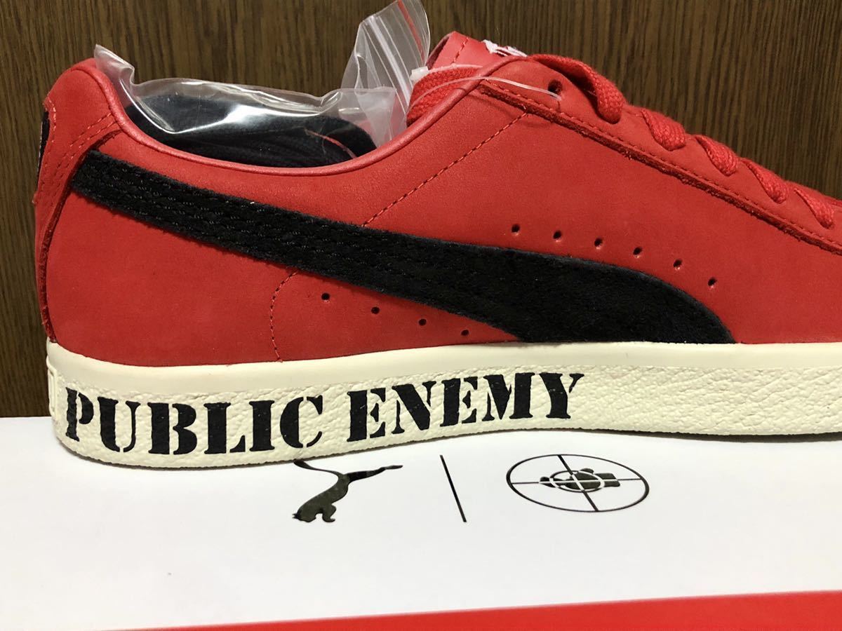 タンやヒール、インソールにパブリックエネミーのロゴがほどこされ一眼見てコラボモデルと分かる大胆なモデルです。