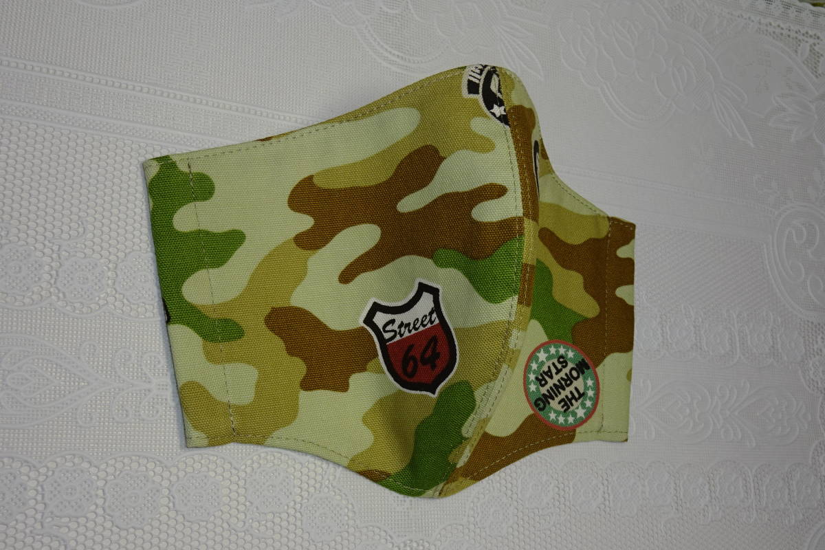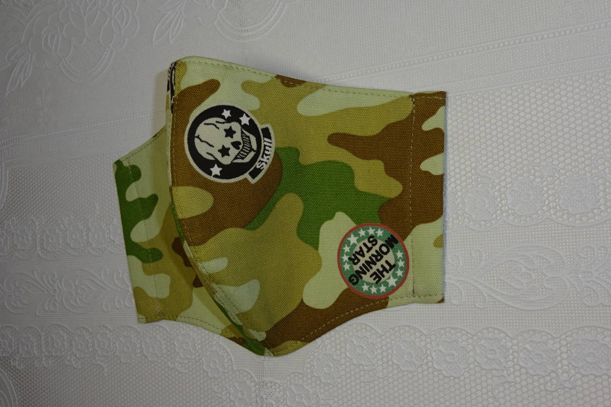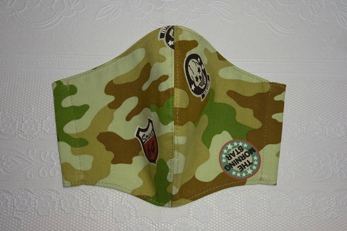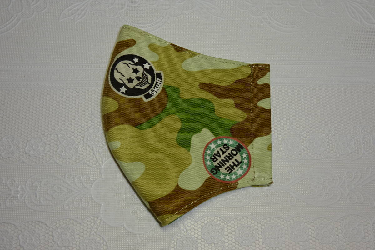 Lサイズ 迷彩柄 カーキ色 ドクロ柄 インナーマスク ハンドメイド