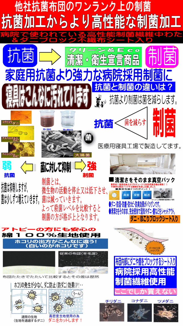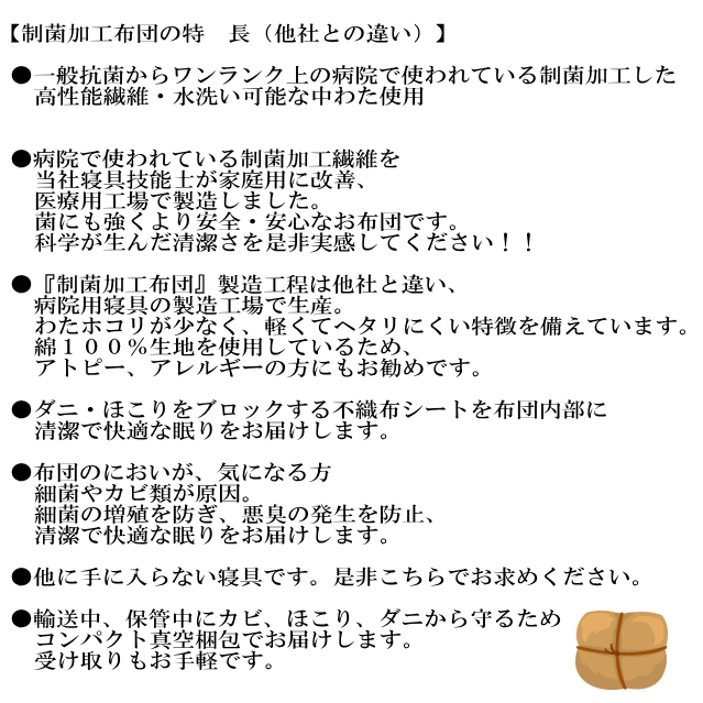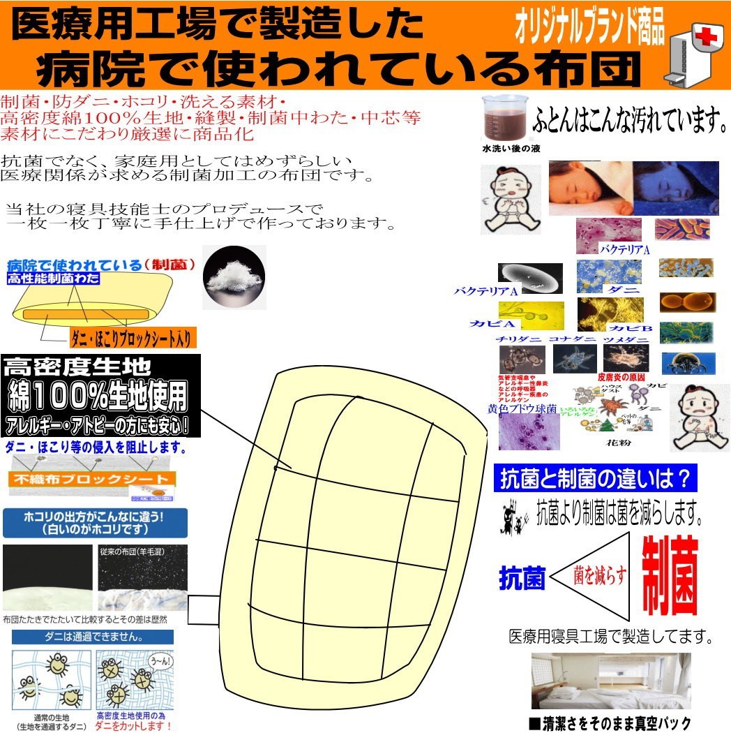 この布団は抗菌より強い制菌防臭加工で医療用布団工場で製造した日本製の軽量3層の 病院、ホテル、施設、託児所