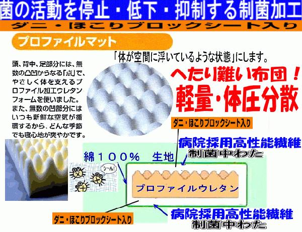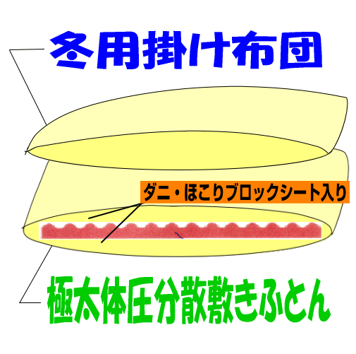 丸洗い可能なファイバー維わたを使用、アレルゲン対策として埃 ほこり、防ダニ ハウスダスト対策としてダニ・ホコリブロックシートを採用したも最適なここでしかない布団です。