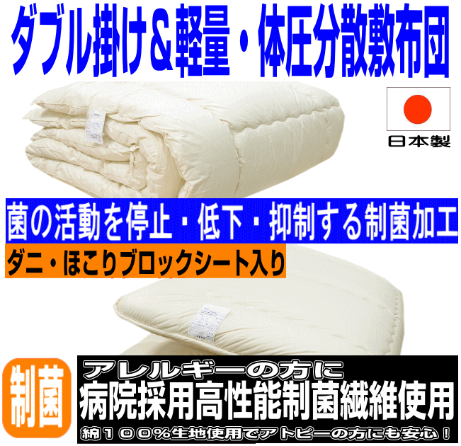 布団セット ダブル 日本製 病院業務用 掛布団 敷布団 ふとん 抗菌 防ダニ 腰痛 アレルギー W体圧分散組布団PR橙