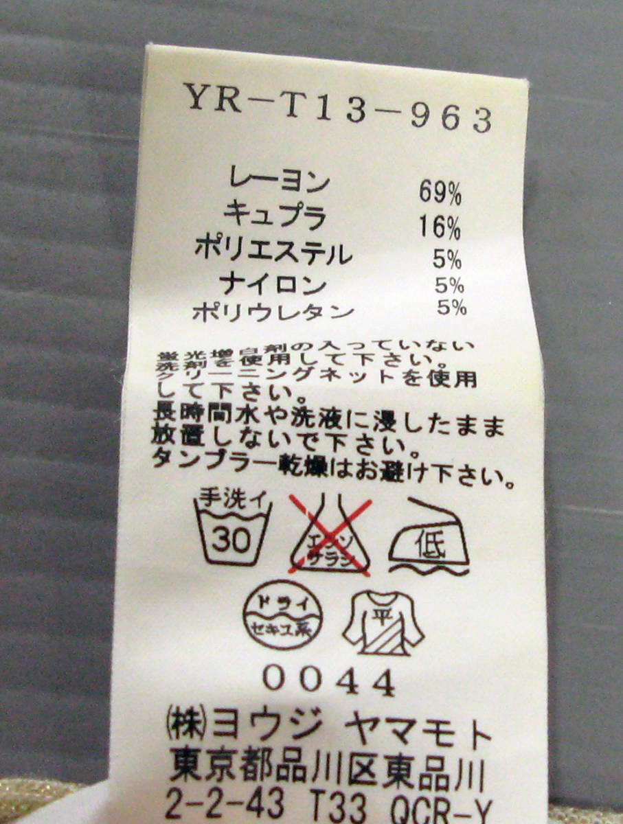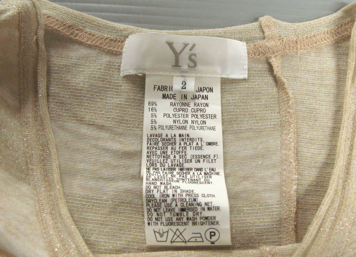 商品名 | ワイズ ヨウジヤマモト:金ラメカットソー2未使用展示品 | ||||||||||||||