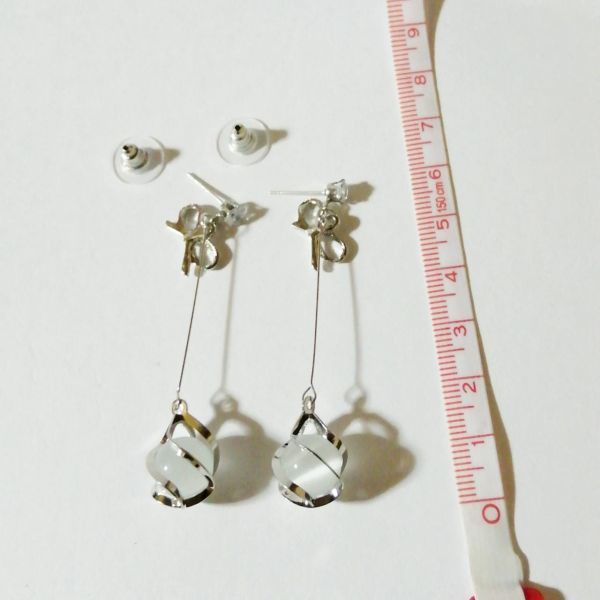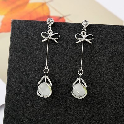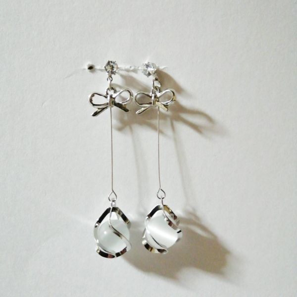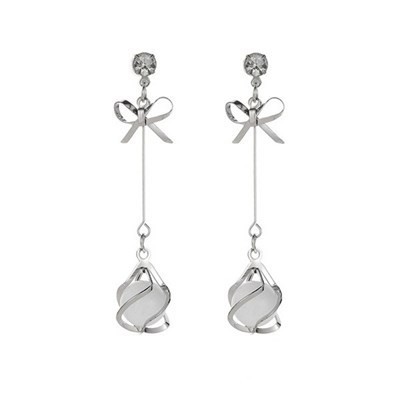 ピアス シルバー ティアドロップ オパール ムーンストーン ロング ファッション 弓 タッセル ブラブラ ジュエリー brincos