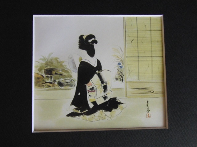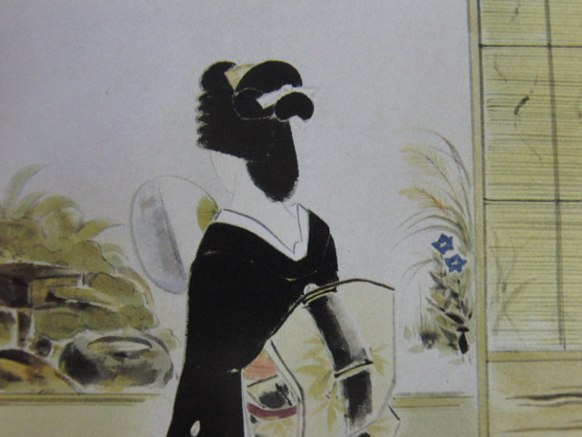 武藤嘉亭、「涼庭」、希少な画集より、新品高級額、マット額装付、送料無料、美人