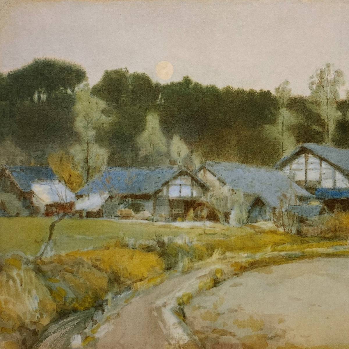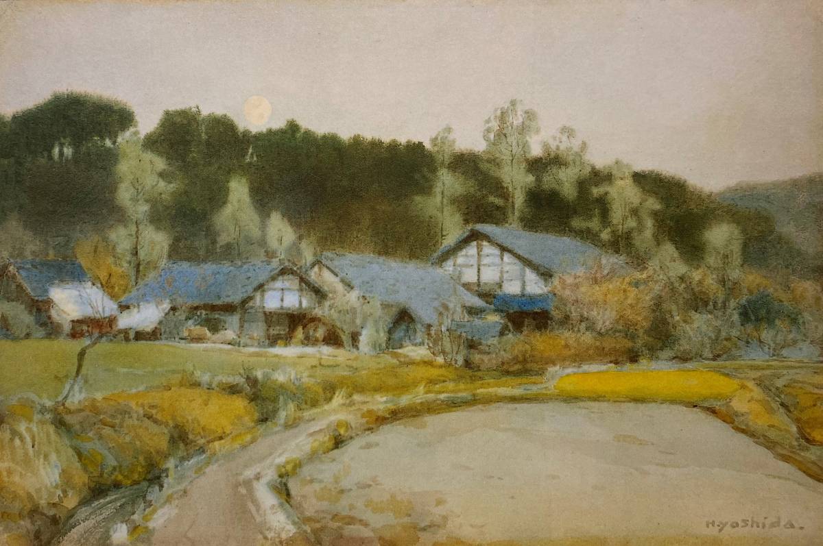 吉田博、[小出雲村月出]、希少な画集より、新品高級額、マット額装付、送料無料