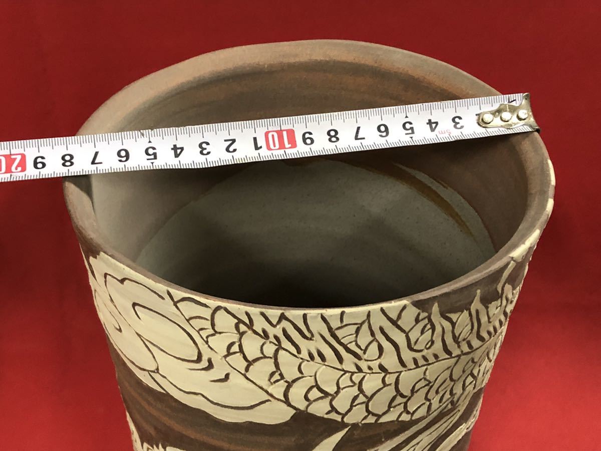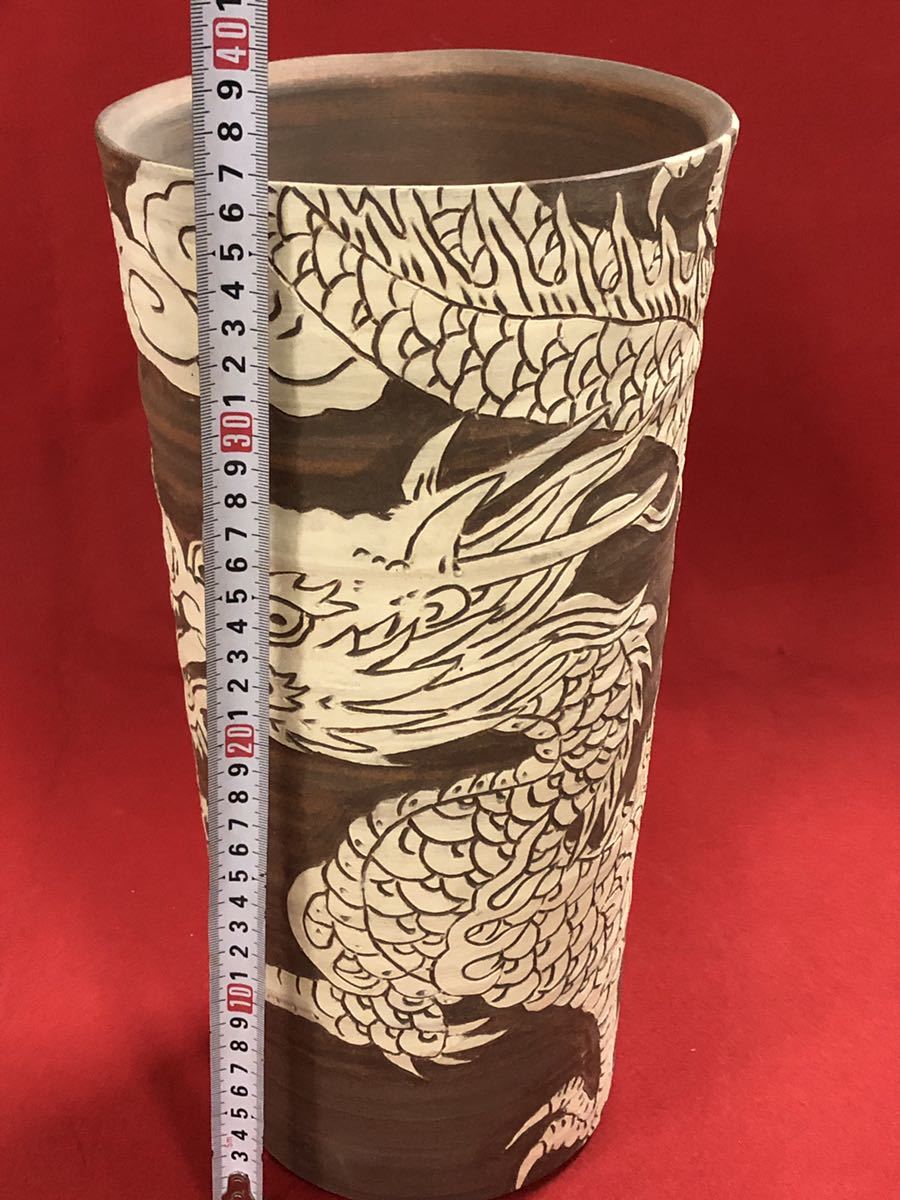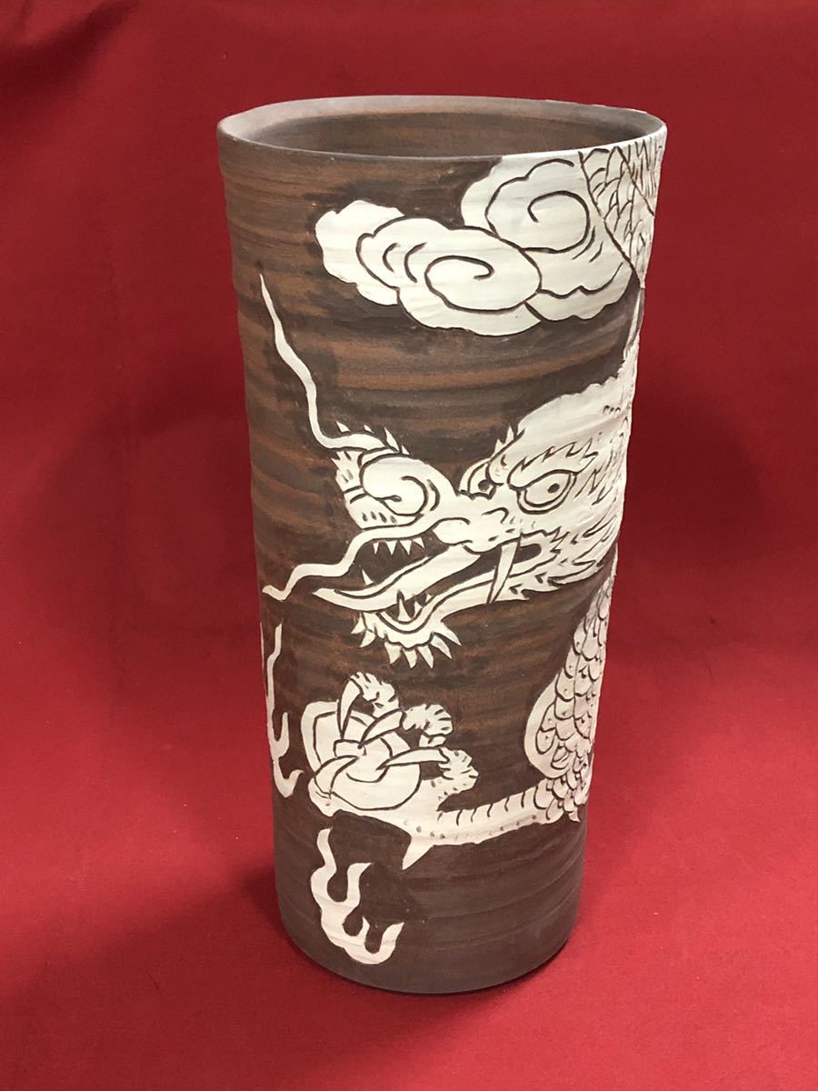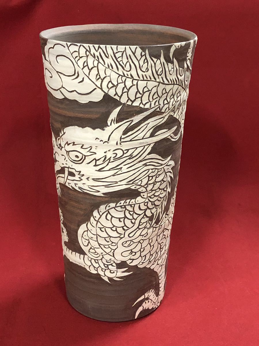 『 白化粧掻落龍紋様花器、飾り花器 K-33 』